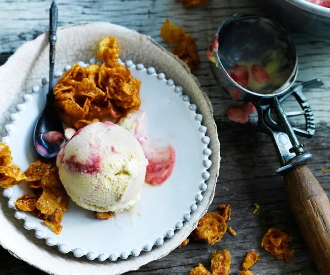 Raspberry ripple sweetcorn ice-cream, recipe at our sister site Women’s Weekly Food