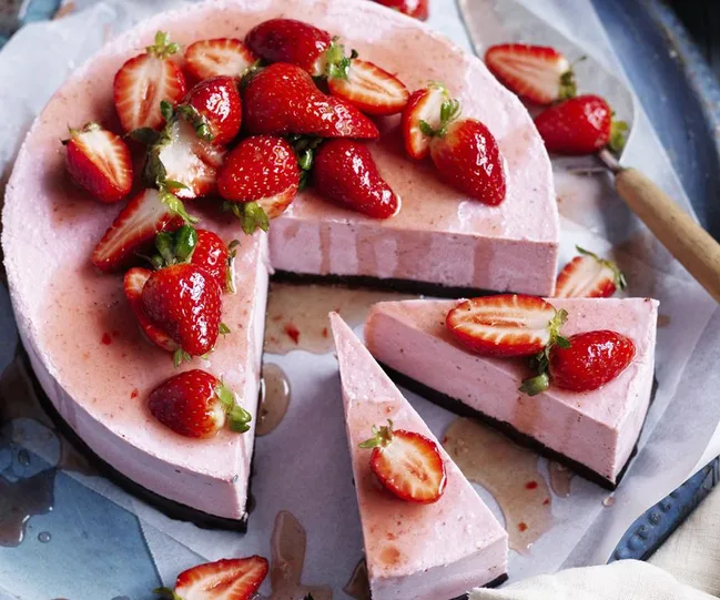 Vegan brownie and strawberry frozen cheesecake, recipe at our sister site Women’s Weekly Food