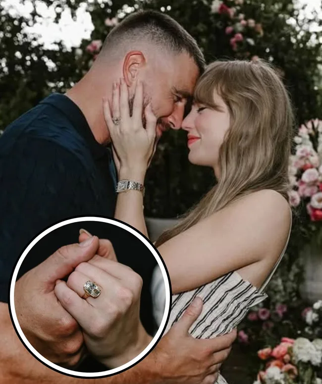 Travis Kelce proposed to Taylor Swift in August 2025 with a stunning antique Old Mine Brilliant Cut diamond ring. It’s estimated to be between seven and 10 carats and appears to have a bezel setting set in 18k yellow gold.