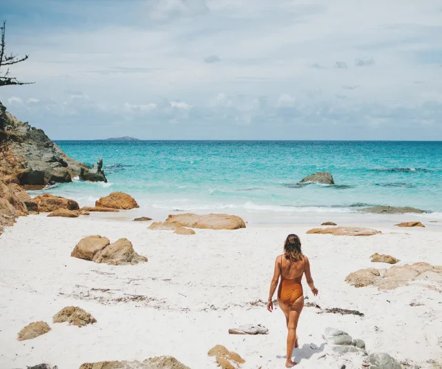 Take the well-worn path to the main swimming hole where the reveal is priceless – expansive coastal views and exquisitely clear water beckons. Or simply sit on the rocks and people-watch.