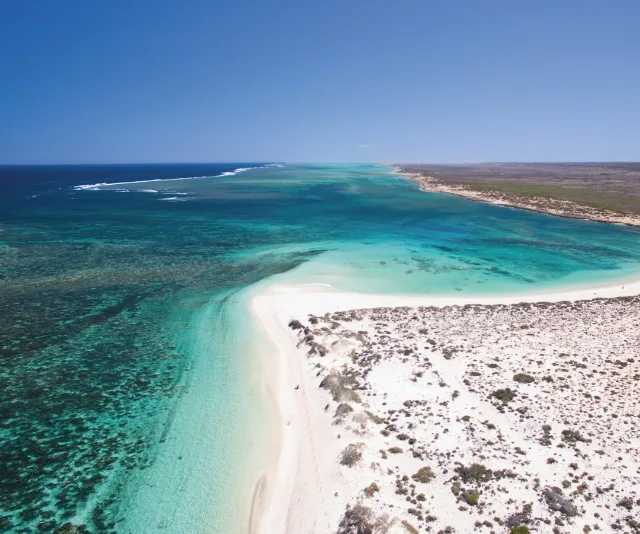 Walk to Turquoise Bay’s south end to jump in, and float back over shallow lagoons formed by the reef, colourful coral and more than 500 species of fish.