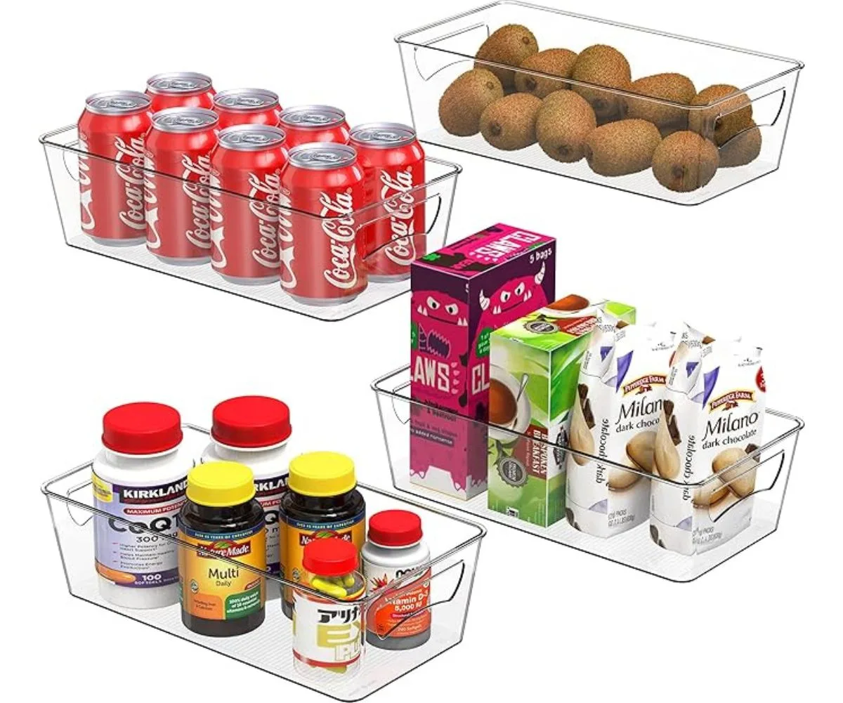 SimpleHouseware 4 Pack Clear Fridge Refrigerator Organiser Pantry Storage Containers