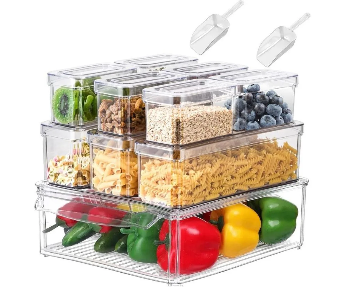 10-Pack Clear Pantry Organiser Bins with Lids and Spoons