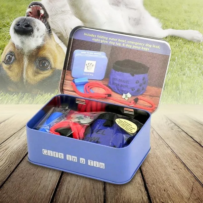 Travelling Dog Survival Kit $26.99 Includes a dog bowl, night-glow tag, doggy bags and an emergency lead – perfect to keep in the car.