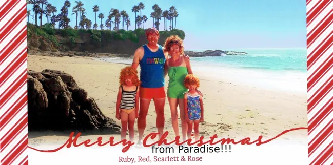 “This our nod to the ever-so-popular holiday card theme that says ‘Look at us soaking up the sun’s rays in a beautiful tropical paradise while you’re freezing your nuts off…don’t you wish you were us?'”