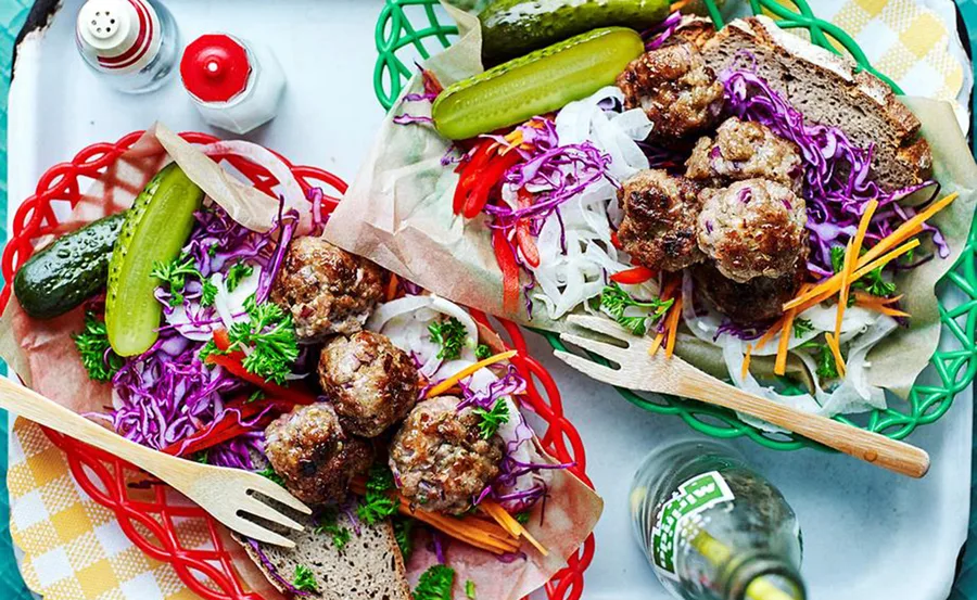 Pork and fennel meatballs with tangy coleslaw
