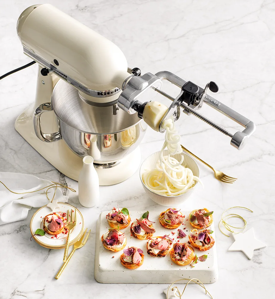 KitchenAid Stand Mixer In Cream, $699 with KitchenAid Stand Mixer Spiralizer Attachment, $169 at Harvey Norman