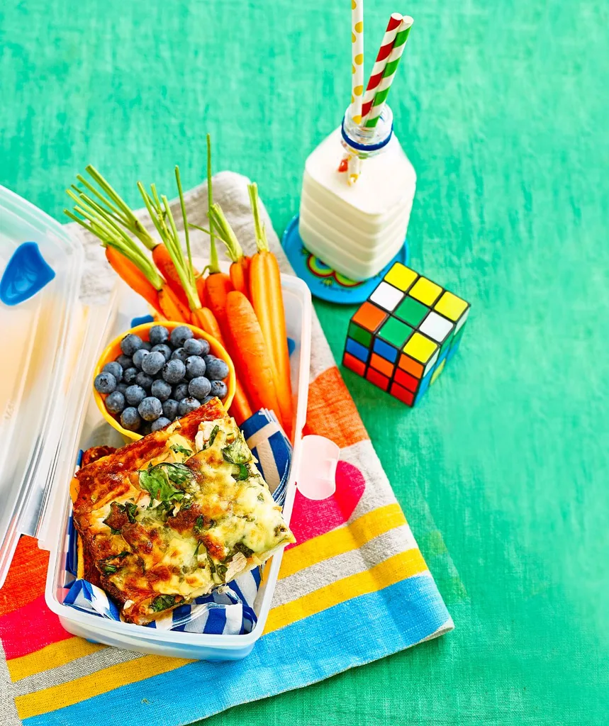 Sprinkle with cheese. Top with a tomato half, cut-side up. Bake 20 mins or until golden brown and cooked. Stand 5 mins, then cool on a wire rack. Pack in lunchbox with extra sauce and salad (if using).
