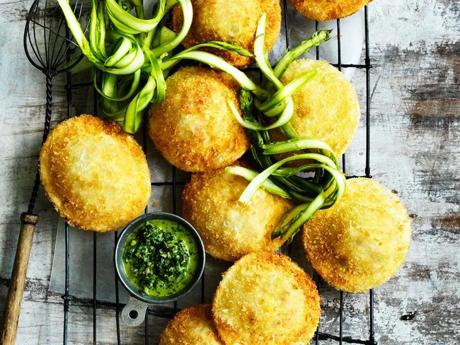 What’s Valentine’s Day without a bit of cheese? Give these crisp cheese ravioli with salsa verde a go for something a little bit different.