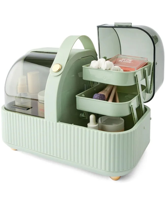 Keep your beauty essentials neat and portable with a Cosmetic Caddy featuring multiple compartments and a handy carry handle.