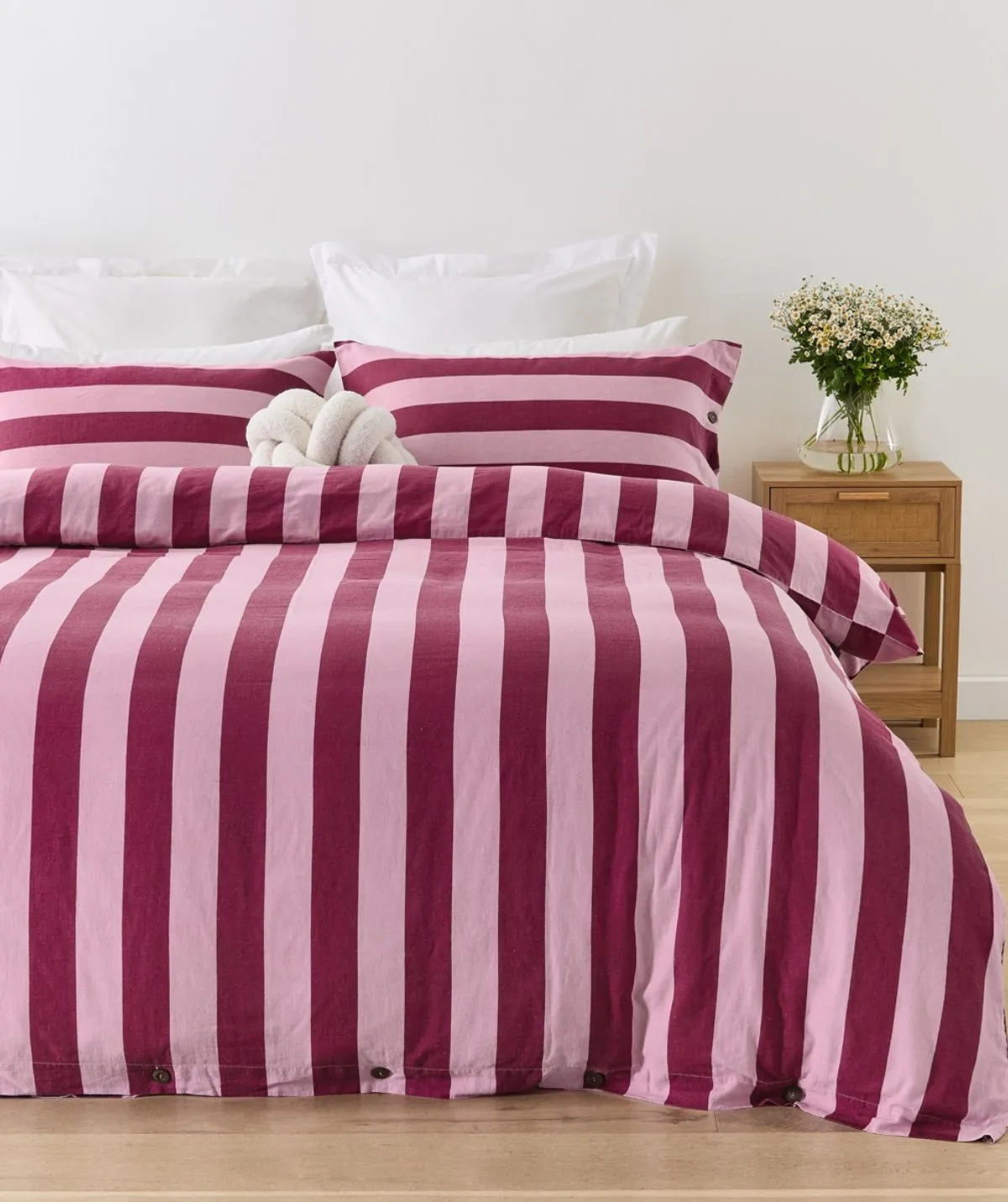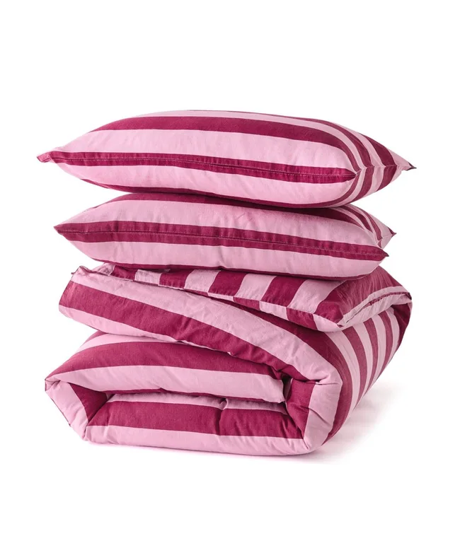 Bring a bold hit of colour to your bedroom with this Stripe Linen Cotton Quilt Cover Set. I makes a great starting point in which style your room around.