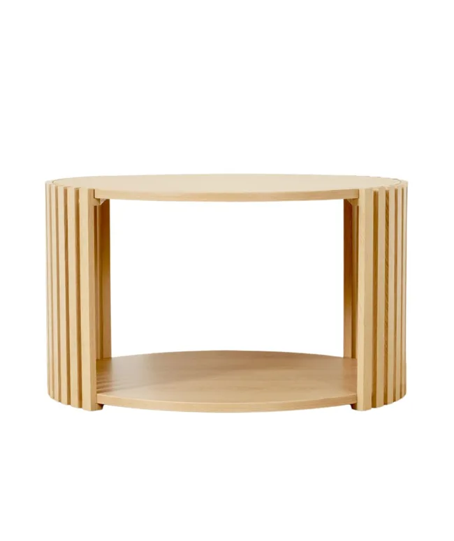 Choose a coffee table with dual tiers and vertical cut-out details like the Nate Coffee Table. It offers a minimalist look that adds both style and storage to your space.