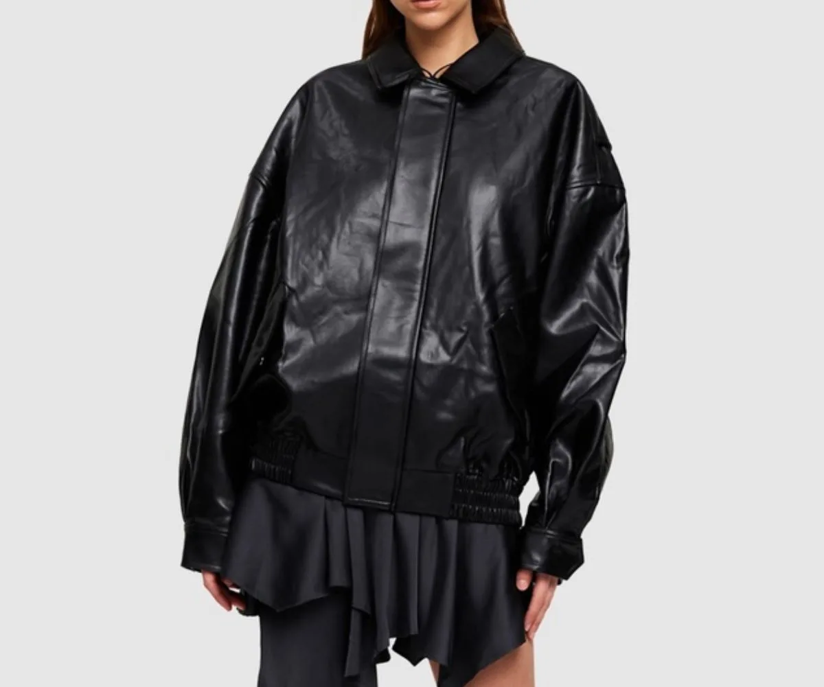 If you prefer a chunkier and more oversized silhouette, a leather bomber jacket will be perfect for you.