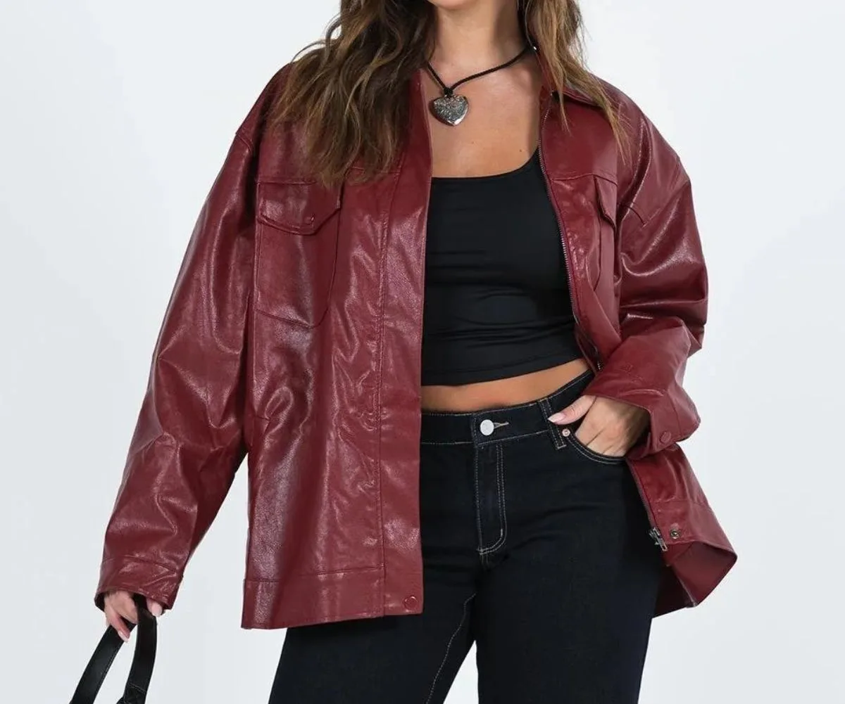 If you’re someone who loves a pop of colour, this burgundy leather jacket should be on your radar.