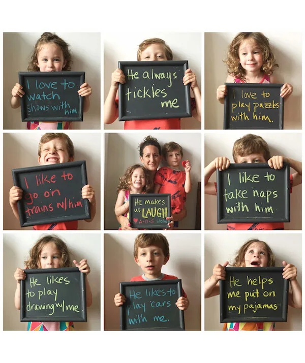 Kids honestly say the darndest things! See what your little one comes up with when they are asked questions like, “My dad’s superpower…” and “I love Dad more than…”. A free printable is available here.