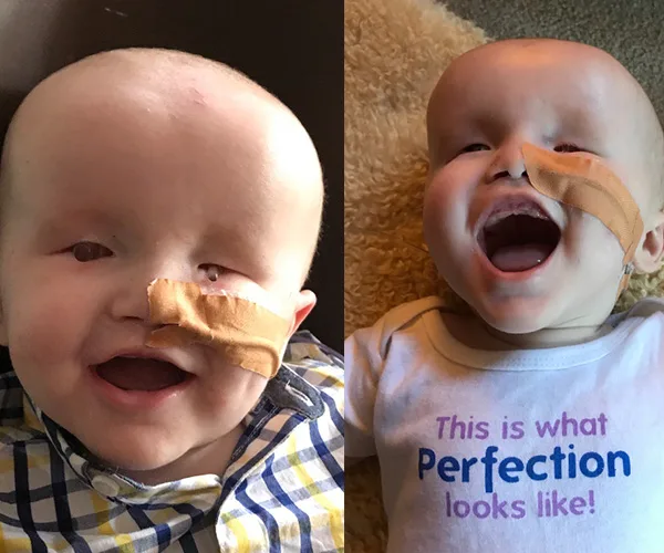 Brave little Archie is currently on the waiting list for more procedures – he needs grommets in both ears, a gastric tube in his stomach and eye surgery for his second prosthetic.