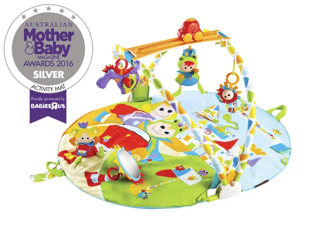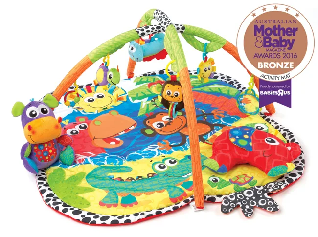 CATEGORY: MOST POPULAR ACTIVITY MAT. The Playgro Australia Jingle Jungle Music and Lights Gym RRP $109.95 is a jungle inspired gym designed to encourage playtime and tummy time. Each toy has a unique feature including click-clack rings, reflective mirror, crinkle sounds, tactile ribbons and a peek-a-boo flap.