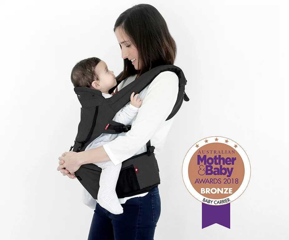MiaMily HIPSTER PLUS 3D, $199.95, is suitable from three months to 24kgs and offers six configurations from forward-facing, chest-facing, hip or back carry.