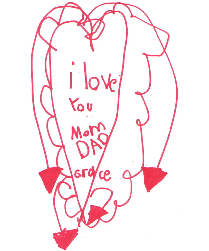 Pushing through partial paralysis, Elena had embarked upon a remarkable project in the last months of her life. She carefully made hundreds of letters and drawings with messages that read “I’m sorry I’m sick” and “I love you Mom, Dad and Grace”, and hidden them throughout their house.