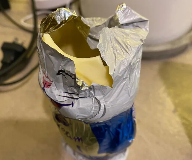 “Off with its head. Oops. One less for the kids. I have tried not to eat it for 2 weeks but today I needed it!”