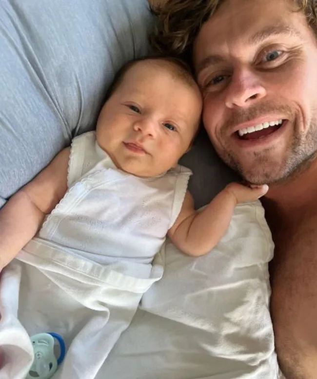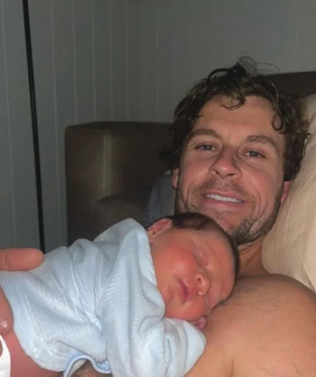 Ryan cosied up to Sampson at just 10 days old, “Sampson Ryan Seebohm has changed our lives and we bloody love him he’s perfect”.