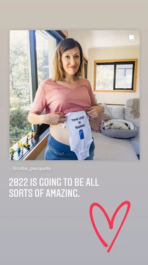 She captioned her post with that signature wit fans love her for, writing, “Whoever had ‘Celia gets pregnant’ on their Unprecedented Events bingo card, you can cross it off now. Wild. I’m very happy, and yes I miss wine.”