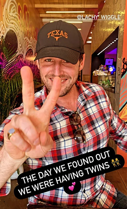 (Image: Instagram)In another sweet photo, a beaming Lachy can be seen holding up two fingers in celebration of finding out they’re having twins.