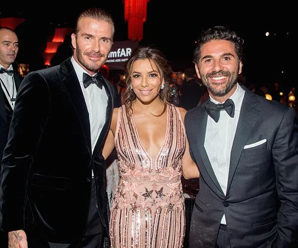 The new parents pictured with their dear friend David Beckham.
