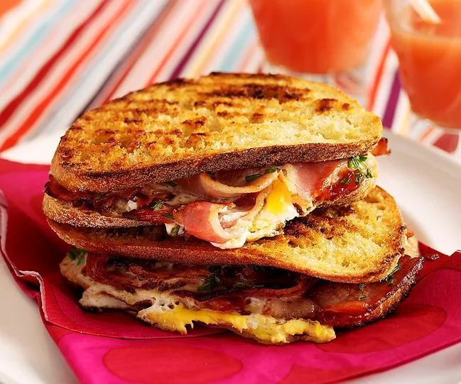 Breakfast jaffle: Bacon and eggs don’t have to be boring. Add an extra bit of oomph with some delicious chutney and serve it up, jaffle-stylies.