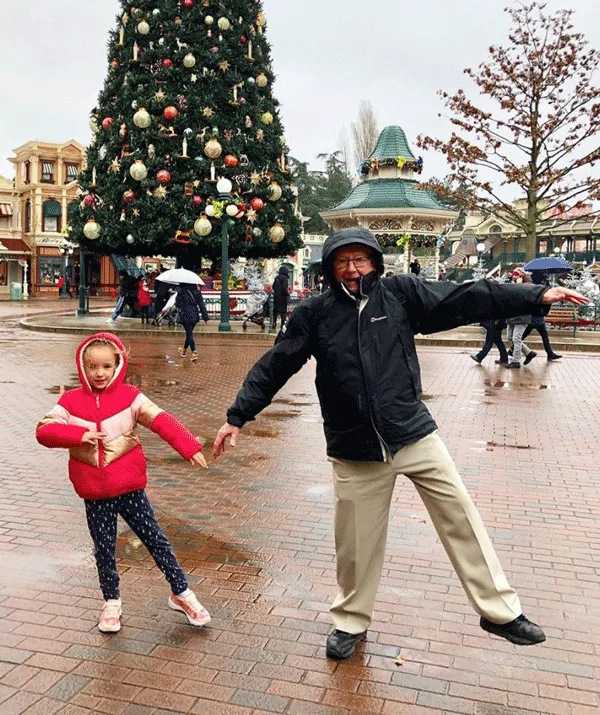 Trixie dancing with her grandad in the Disneyland main square.