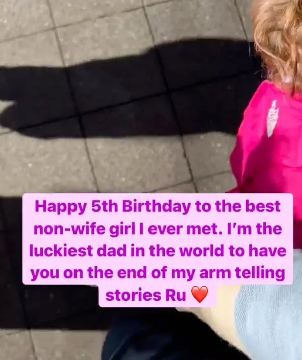 Hamish posted a video of him walking hand-in-hand with Rudy, and he wrote, “Happy 5th Birthday to the best non-wife girl I ever met. I’m the luckiest dad in the world to have you on the end of my arm telling stories Ru.”