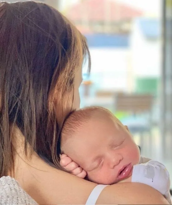 She posted a picture of her baby resting on her shoulder with the caption, “Almost 2 weeks with my baby boy.”