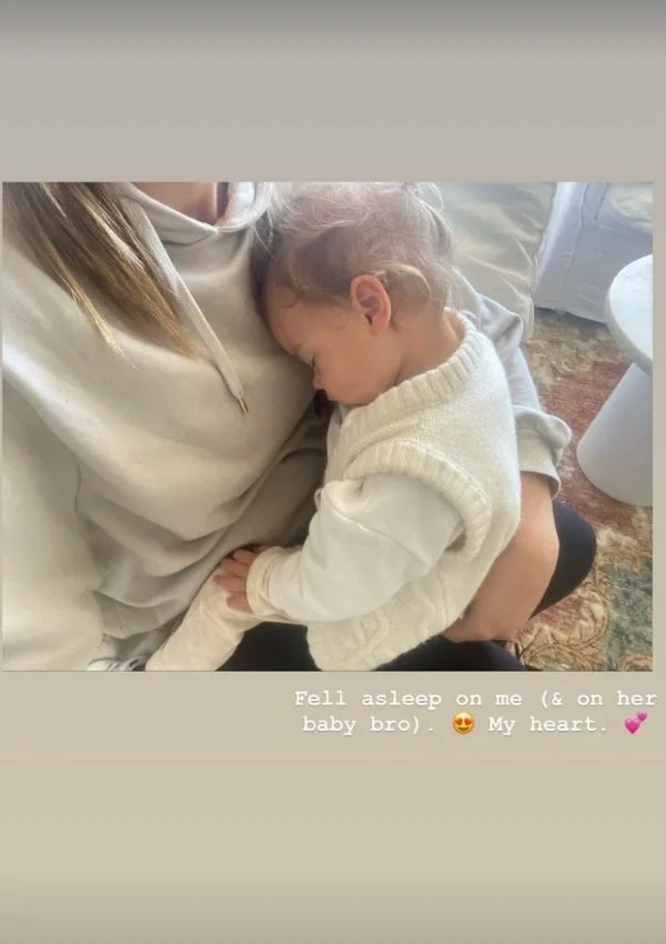 “Fell asleep on me (& on her baby bro). My heart,” the soon-to-be mother of two penned.