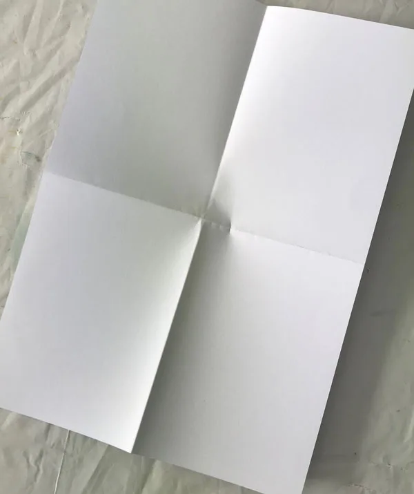 STEP 1: Fold A4 paper into half and half again; open up the sheet of paper. stamp in bottom right hand corner.