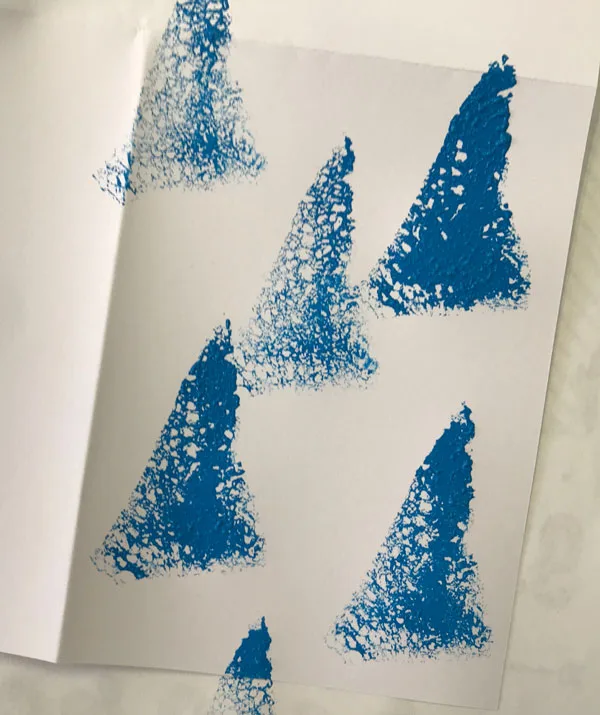 This helps create movement and interest in your design. (Tip: Put scrap paper underneath the card to stop getting paint onto table).