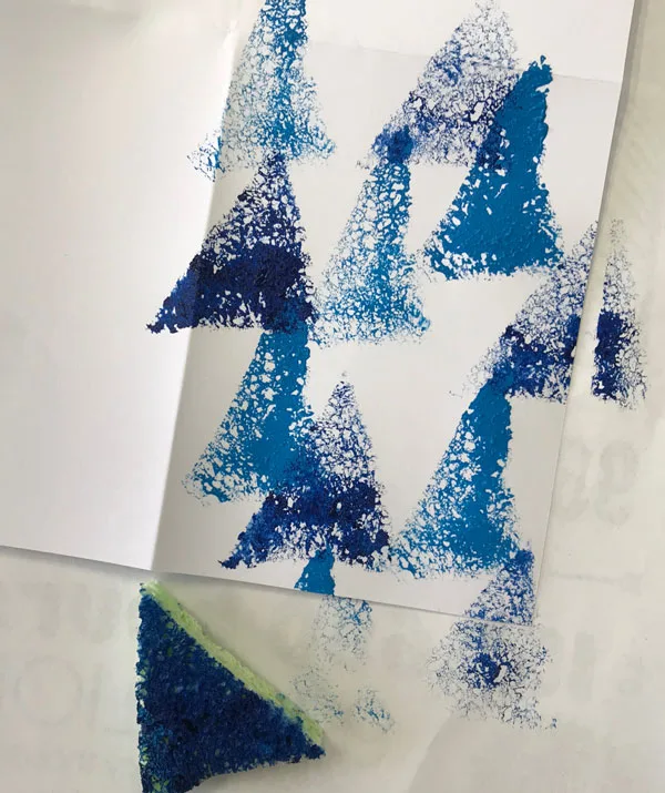 STEP 2: Use scissors to cut sponge into triangles.
