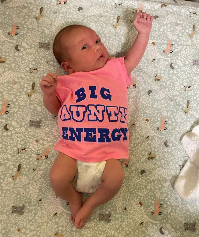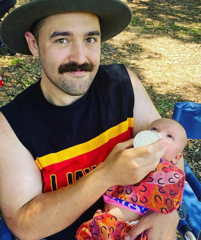 Miranda shared this cute update on Grace wearing a shirt from Blak-owned label Gammin Threads. She captioned the snap: “Thank you @gamminthreads for this little Aunty’s deadly new tee. Got that side eye down pat 🥰💕”