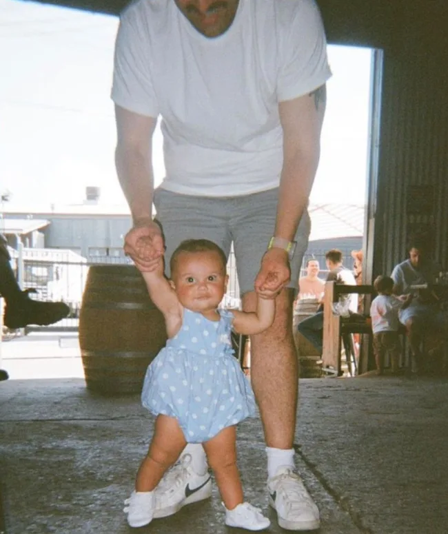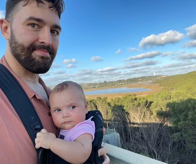 James shared a peek into his and Miranda’s life as new parents with this charming photo from a walk with Grace in August 2022.