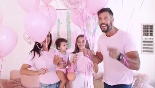 The black and white video then turns into a full glorious pink clip of the family, who couldn’t look more excited.