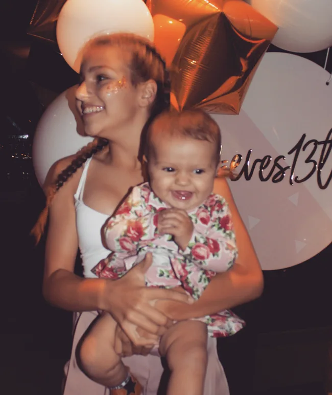 Eve quickly took to the role of big sister when Sam and her mum welcomed their daughter Willow in 2017, pictured here giggling in Eve’s arms at her 13th birthday party.