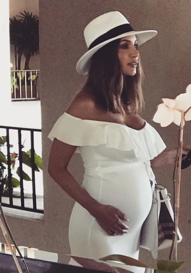 Showing off the bump in this printed frock, Snez confessed: “I feel like I am buying new clothes every week to fit my growing bump and growing toddlers.”