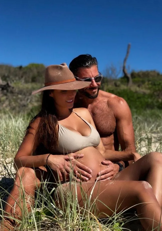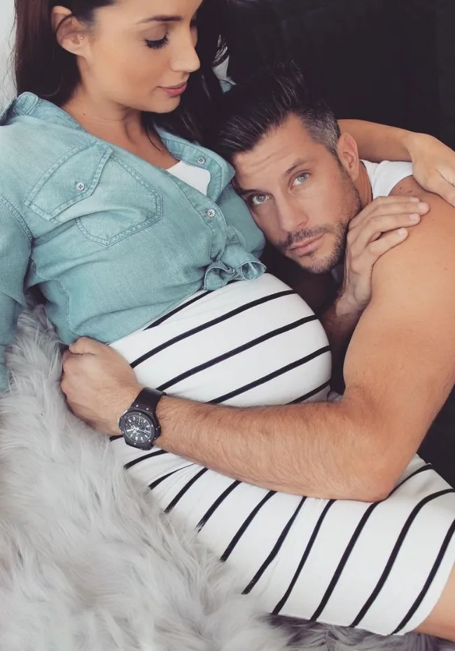 Mum and dad! Sam and Snez marked 30 weeks of her pregnancy with this sweet couple snap.