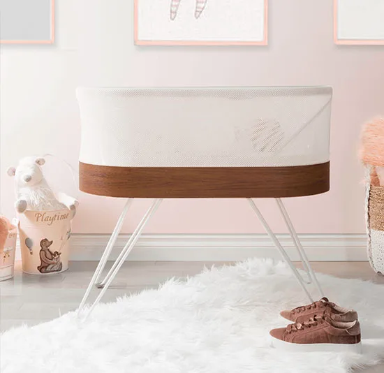 Not only does it keep baby in the correct sleeping position, but the tech-enabled crib also soothes babies by imitating the sounds and motions of the womb.
