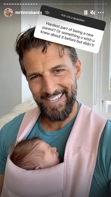 It would be safe to say being a new parent is a big old step in the whole realm of life, but Tim Robards is taking it all in his perfectly physiqued stride.