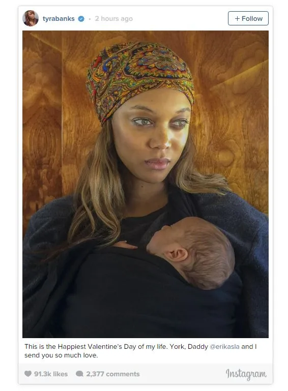 Tyra Banks shared a photo of her newborn baby boy, York, on Instagram on Sunday.
