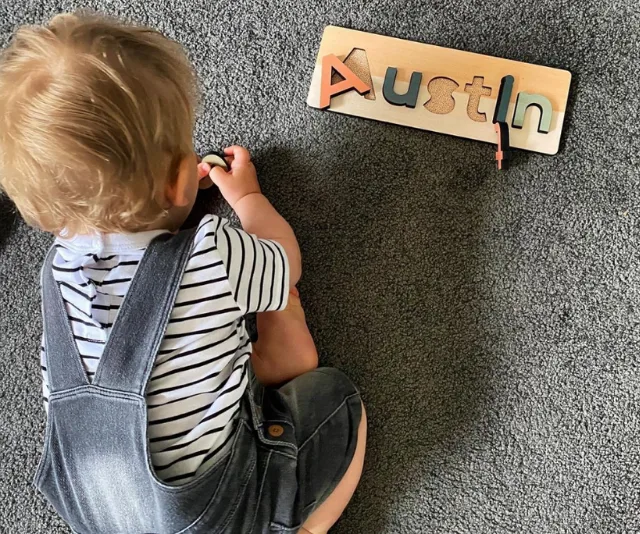 In the pic, the blonde bub can be seen playing with a sign bearing his name. While his face isn’t shown, he looks adorable in a pair of denim overalls.