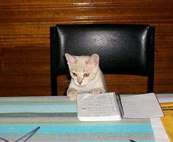 Missy the kitten. I have two grown up sons… they were never as eager to do their homework!