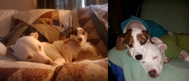 Kaycee and Max were both born August 7, 2009. Besides the colour of Max’s eyes, not much for the two doggos has changed.