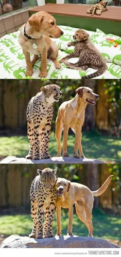 Kasi the cheetah and Mtani the labrador were brought together when they were just three months old at animal theme park in Florida. To this day, they’re still best buds and are a huge draw for visitors.