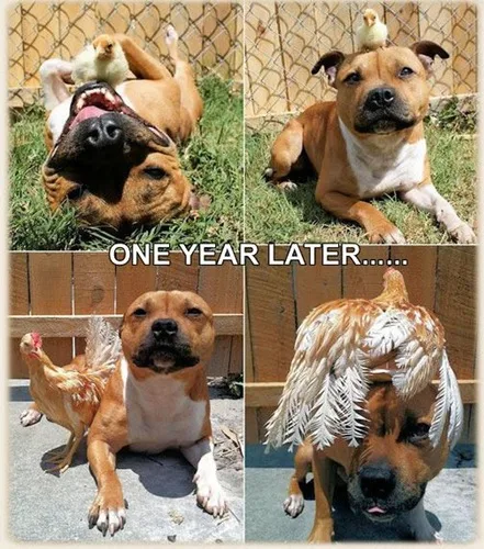 Pikelet, an adopted Pit Bull who was once a stray, is now a foster brother at an animal rescue centre here in Australia. He bonds with all types of animals, from pigs to chicks.
